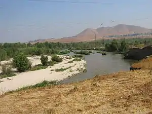 ![]() The Santa Ana River as seen from a small bluff overlooking the water. | |