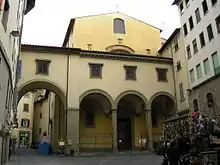 ![]() West front of Santa Felicità behind Vasari Corridor. | |