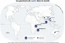Every sapphire mine produces a wide range of quality, and origin is not a guarantee of quality. For sapphire, Kashmir receives the highest premium, although Burma, Sri Lanka, and Madagascar also produce large quantities of fine quality gems.[2]