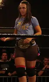 On February 15, 2005, she won Impact Zone Wrestling's Women's Championship by defeating Adrenelyn on an event in Japan.[5][9] Later in 2005, she toured Japan again, and released a video that depicts six of her matches entitled "Sara Del Rey Japan Tour 2005". She also wrestled in Mexico, using the gimmick "The American Angel", in which she wore a wrestling mask.[1] She was unmasked in a match in the Lucha Libre Femenil promotion on December 16, 2005.[5] She later donned a mask once again as Nic Grimes, the storyline sister of Vic Grimes for Wrestling Society X.[1][5]