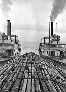 The stern-wheel was driven by twin high-pressure single-cylinder steam engines manufactured by Iowa Iron Works of Dubuque, Iowa.[4][8] The cylinder of each engine had a bore of 14 inches (360 mm) diameter and stroke of 84 inches (2,100 mm).[1]