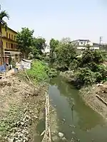 In the 16th century, the main waters of the Bhagirathi, which earlier used to flow through the Saraswati, started flowing through the Hooghly channel. In the course of time, the upper Saraswati dried up, but the Bhagirathi or Hooghly has abandoned the old Adi Ganga channel and flows through the lower course of the Saraswati below Sankrail.[1][4]