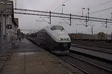 Sarpsborg Station (Norwegian: Sarpsborg stasjon) is located at the city of Sarpsborg in Norway on the Østfold Line. The station is served by regional trains between Oslo and Halden with hourly headway by the Norwegian State Railways.