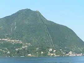 At its base sits the town of Laveno-Mombello, from which the mountain is served by a funicular cable ride to the top. The top of the mountain has a hotel and restaurant popular with tourists, along with a launch board for hang gliders to descend the mountain.