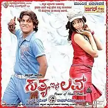 Satya In Love (Kannada: ಸತ್ಯ ಇನ್ ಲವ್) is a 2008 Indian Kannada film directed by Raghav Loki. It stars Shiva Rajkumar and Genelia D'Souza in the lead roles. Produced by T.N. Ramesh under Ananya Enterprises with music composed by Gurukiran. The movie was released in 100 theatres.[1] It opened all over Karnataka and set a new record by grossing nearly 4 crores in its opening weekend for the first time in Kannada film industry.