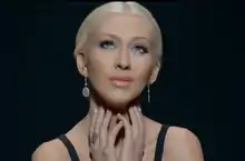 A music video, directed by Christopher Sims, was already shot on November 8, 2013, with Aguilera posting to her Twitter, Facebook and Instagram page a picture of her standing next to a piano, where the duo is playing the track.[37][38][39] The music video, which was shot in Los Angeles, was released on November 19, 2013, exclusively on Entertainment Tonight, while VEVO premiered the video on November 20, 2013.[40] The video features Aguilera in a simple black dress and natural make-up, reminiscent of her "Beautiful" days, according to MTV's Natasha Chandel.[41] In the video, the trio perform the ballad as people — a child whose parents won't stop fighting, a young couple lying coldly side by side, an older man bidding his dying wife goodbye — act out the heartbreaking lyrics.[42]