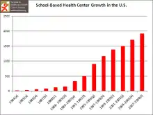 In the past 40 years, school-based health centers have grown from a handful to 1,909 in 45 states.[13][14] The initial survey in 1985, conducted by the Center for Population Options (now known as Advocates for Youth), reported 35 centers nationwide.[15] Follow-up surveys by The Center for Health and Health Care in Schools (previously known as the Making the Grade National Program Office ) continued to document SBHC growth through the 1990s and early 2000s.[16][17] Since the late 1990s, the National Assembly on School-Based Health Care (NASBHC) has conducted a nationwide census of individual centers tri-annually, every 3 years.