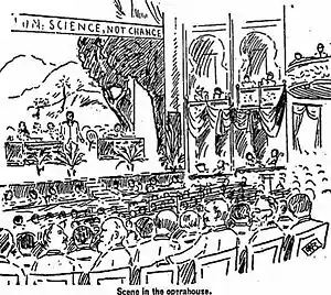 Scientific research involves using the scientific method, which seeks to objectively explain the events of nature in a reproducible way.[103] An explanatory thought experiment or hypothesis is put forward as explanation using principles such as parsimony (also known as "Occam's Razor") and are generally expected to seek consilience – fitting well with other accepted facts related to the phenomena.[104] This new explanation is used to make falsifiable predictions that are testable by experiment or observation. The predictions are to be posted before a confirming experiment or observation is sought, as proof that no tampering has occurred. Disproof of a prediction is evidence of progress.[lower-alpha 5][lower-alpha 6][103][105] This is done partly through observation of natural phenomena, but also through experimentation that tries to simulate natural events under controlled conditions as appropriate to the discipline (in the observational sciences, such as astronomy or geology, a predicted observation might take the place of a controlled experiment). Experimentation is especially important in science to help establish causal relationships (to avoid the correlation fallacy).