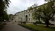 It relocated twice to other ex-naval ships; 1831 to 1857 HMS Dreadnought and then 1857 to 1870 HMS Caledonia (renamed Dreadnought).[3] In June 1866, the Admiralty lent HMS Belleisle to the society to enable them to treat cholera patients in London.[5] Following the closure of the Royal Naval Hospital at the site of the Royal Greenwich Hospital in 1869, the society was granted the lease in 1870 and on transferring became known as the Dreadnought Seamen's Hospital, after its last floating home. Thus the Greenwich Hospital switched from the care of ex-members of the Royal Navy to those of the Merchant Navy. Meanwhile, the Dreadnought remained in use as isolation accommodation until 1872.[3]