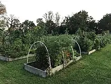 In 2014, the Seaside Village Garden Committee decided to build a community garden with raised beds for vegetable production as well as a fenced-in dog run.[59] Village residents took on the task of building the raised beds. The first season 15 were built. They have since expanded to 50. There will be a maximum of 64 beds when completed.[60] An arbor with a picnic table next to the gardens has created a relaxing location for village potlucks and impromptu picnics. The following quote from Yale's Master Plan captures the essence of Seaside Village's first 100 years succinctly: