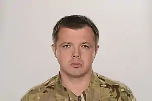 Semen Ihorovych Semenchenko (Ukrainian: Семен Ігорович Семенченко) is a former deputy to the Verkhovna Rada of Ukraine, First Deputy Chairperson of the Verkhovna Rada of Ukraine Committee on National Security and Defence[2] and the commander-founder of the volunteer territorial defence battalion "Donbas", based in Donetsk.[3][4] He was a deputy of the Verkhovna Rada from 2014 to 2019.[5]
