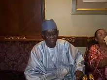 In the contemporary age, griots have maintained their significance as traditional custodians through performance. Senegalese singers and instrumentalists who fall under the griot genre due to hereditary caste include Mansour Seck, Thione Seck, Ablaye Cissoko and Youssou N'Dour.[14] However many musicians have adopted the role in a break from traditional values.[14] These include Baaba Mal, Nuru Kane and Coumba Gawlo.[14] A typical contemporary example of a “praise-song” would be Khar M’Baye Maadiaga’s (a female musician of griot descent) “Democratie”, which praised the second president of Senegal Abdou Diouf and the Parti Socialiste.[11]