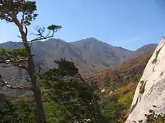 Seoraksan National Park (Korean: 설악산국립공원, 雪嶽山國立公園; RR: seoraksan-gungnipgong-won) is a national park in South Korea. It listed by the South Korean government with UNESCO as a tentative World Heritage site. The government designated the area as a nature reserve in 1965 and UNESCO designated it as a biosphere reserve in 1982. It was also the first Korean national park to be named under the National Park Law in 1970. Located on the east-central Korean peninsula, the reserve includes the Dinosaur Ridge, Injegun, Yanyanggun, and Sokchosi. It is popular with tourists and nature enthusiasts. It is home to many rare taxa of flora and fauna.