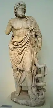 Serpents are connected with venom and medicine. The snake's venom is associated with the chemicals of plants and fungi[14][15][16] that have the power to either heal or provide expanded consciousness (and even the elixir of life and immortality) through divine intoxication. Because of its herbal knowledge and entheogenic association, the snake was often considered one of the wisest animals, being (close to the) divine. Its divine aspect combined with its habitat in the earth between the roots of plants made it an animal with chthonic properties connected to the afterlife and immortality. The deified Greek physician Asclepius, as god of medicine and healing, carried a staff with one serpent wrapped around it, which has become the symbol of modern medicine. Moses also had a replica of a serpent on a pole, the Nehushtan, mentioned in Numbers 21:8.
