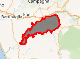 Serre is a hilltown located in northern Cilento. Its municipal territory, crossed by the rivers Sele and Calore Lucano, borders with Albanella, Altavilla Silentina, Campagna, Eboli and Postiglione.[3] The municipality counts the hamlets of Borgo San Lazzaro and Persano.