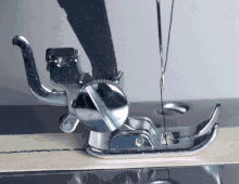 A walking foot replaces the stationary presser foot with one that moves along with whatever other feed mechanisms the machine already has. As the walking foot moves, it shifts the workpiece along with it. It is most useful for sewing heavy materials where needle feed is mechanically inadequate, for spongy or cushioned materials where lifting the foot out of contact with the material helps in the feeding action, and for sewing many layers together where a drop feed will cause the lower layers to shift out of position with the upper layers.[24]
