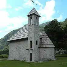 The legendary ancestor of the Shala was Zog Diti, while his brothers Mark Diti was that of the Shoshi and Mir Diti that of the Mirdita. There are also other founding traditions.[5] Results of historical and archaeological research confirm the claim of oral histories that ancestors of Shala came to the valley several centuries ago.[6] Some sources indicate that ancestors of Shala came to Albania from the region of Kuči (modern day Montenegro), which is why they are considered as related to Kuči.[7] Shala tribe was in conflict with Gashi tribe until they made peace in August 1879, based on sultan's order.[8] Russian scholar J. V. Ivanova (1922–2006) conducted research in northern Albania in 1956–58, and recorded from the locals that when the Shala had settled the Shala valley, they encountered the native "Mavriqi", from the Puka mountains in the 15th or 17th century, ultimately originating from the Pashtrik mountain near Prizren (in Kosovo) at the end of the 14th century.[3] The religion of the tribe was Catholic while the tribe had around 3,000 members at the end of 19th century.[9]
