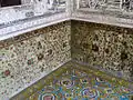 First floor contains king’s porch and hall covered with excellent and minimalist mirroring, with rooms on the sides which together resemble ear rings on a human ‘s face. All parts have interesting decorations. These little rooms, with reticular decorations, drawings and mirroring, also can be seen on other floors.[5]