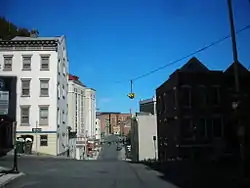 ![]() Chapel Street at the eastern end of the hollow, looking north towards the Palace Theater | |