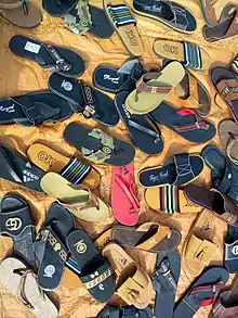 As civilizations began to develop, thong sandals (the precursors of the modern flip-flop) were worn. This practice dates back to pictures of them in ancient Egyptian murals from 4000 BC. One pair found in Europe was made of papyrus leaves and dated to be approximately 1,500 years old. They were also worn in Jerusalem during the first century of the Common Era.[11] Thong sandals were worn by many civilizations and made from a wide variety of materials. Ancient Egyptian sandals were made from papyrus and palm leaves. The Masai of Africa made them out of rawhide. In India they were made from wood. In China and Japan, rice straw was used. The leaves of the sisal plant were used to make twine for sandals in South America while the natives of Mexico used the Yucca plant.[12][13]
