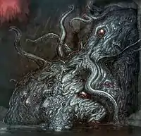 A shoggoth (occasionally shaggoth[1]) is a fictional monster in the Cthulhu Mythos. The beings were mentioned in passing in H. P. Lovecraft's sonnet cycle Fungi from Yuggoth (1929–30) and later described in detail in his novella At the Mountains of Madness (1931).[2]