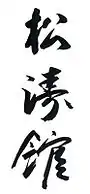 Shotokan was the name of the first official dojo built by Gichin Funakoshi, in 1936[3] at Mejiro, and destroyed in 1945 as a result of an allied bombing.[4] Shoto (松濤, Shōtō), meaning "pine-waves" (the movement of pine needles when the wind blows through them), was Funakoshi's pen-name,[5] which he used in his poetic and philosophical writings and messages to his students. The Japanese kan (館, kan) means "house" or "hall". In honour of their sensei, Funakoshi's students created a sign reading shōtō-kan, which they placed above the entrance of the hall where Funakoshi taught.[5] Gichin Funakoshi never gave his system a name, just calling it karate.