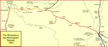 Local people proposed a railway from Birmingham to Shrewsbury by way of Dudley and Wolverhampton in 1844. The London and Birmingham Railway was engaged at the time in competitive rivalry with the Grand Junction Railway and hoped that the Shrewsbury line might enable them to by-pass the GJR; accordingly they supported it, and provisionally agreed a lease.[1][2]