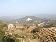 Located on the southeast of Wuhua County and adjacent to Jiexi and Fengshun county, Shuanghua town is 28 km from the county town (Shuizhai town) with an area of 141 square kilometers. Under the control of Shuanghua town, there are 16 village committees, 221 groups of villagers and 1 community's neighborhood committee. Till the end of 2008, there were about 5984 families, 34,827 people in total in Shuanghua town, among which there were 1847 nonagricultural populations and 32890 agricultural populations. The farmland area is about 14772 mu (a Chinese unit of area, per mu is equal to 0.0667 hectares), including 11192 mu of paddy field and 3402 mu of dry land.