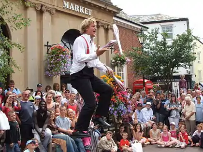 Sidmouth Festival was founded as a folk dance festival in 1955 by the English Folk Dance and Song Society (EFDSS), but gradually expanded to cover ceilidh dancing, music and song, as well as related folk crafts.[2] Over time, the scope also broadened to include performers from abroad, and the festival was renamed the Sidmouth International Folklore Festival.[3]