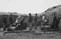 Federal battery with 10 inch seacoast mortars, Model 1841, on Morris Island, during the siege of campaign against Charleston harbor.