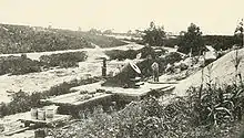 10-inch seacoast mortars, Model 1841, being emplaced near Butler's Crows Nest near Dutch Gap, Virginia.