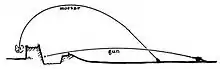 The siege trains of the Civil War consisted almost exclusively of guns and mortars. Guns fired projectiles on horizontal trajectory and could batter heavy construction with solid shot or shell at long or short range, destroy fort parapets, and dismount cannon. Mortars fired shells in a high arcing trajectory to reach targets behind obstructions, destroying construction and personnel.