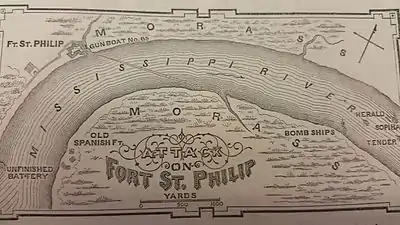 The Royal Navy had begun the Louisiana Campaign to capture New Orleans. However, to reach New Orleans, the destruction of the small U.S. Navy squadron in the area and the U.S. Army forts and batteries was necessary. Fort St. Philip, an irregular work guarding the Mississippi River, the body of a parallelogram, was one of the said forts.