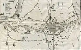 At first, Habert's attack on his right flank fooled Blake into thinking it was Suchet's main effort. Then Palombini's attack at Mislata diverted his attention. Despite persistent assaults, the Italians failed to break through and suffered heavy losses. Suchet's main column reached Blake's left rear virtually unopposed.[5] As Harispe approached the village of Aldaia, he sighted the Spanish cavalry reserve. With a single squadron of the 4th Hussars, Boussart rashly attacked a vastly superior force. The handful of French horsemen were wiped out, while Boussart was cut down and left for dead, his sword and decorations pilfered.[7] The bulk of the French cavalry under General of Brigade Jacques-Antoine-Adrien Delort[8] soon came up and routed the Spanish troopers, driving them beyond the Rio Júcar and depriving Blake of much-needed cavalry support.[7]
