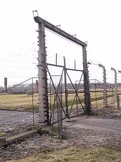 ![]() Gate of the "family camp" at Auschwitz II–Birkenau | |