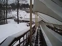 Sledding took place in Sigulda as early as 1887.[1] Several alpine skiing venues were held near the track following World War II.[2] By the late 1960s, the city government of Sigulda approved the construction of a new track, designed by the Leipzig Sports Facilities Scientific and Technical Centre in East Germany. Construction began in 1984 with the participation of the Yugoslav company Graming d.o.o. and local builders, and the track was finally completed in 1986.[3][4] It was built primarily for the needs of Soviet bobsledders and lugers, but after the restoration of the independence of Latvia in 1990, the track became the training center for Latvian wintersport athletes.