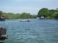 From the end of the 17th century, Cambodia lost control of the Mekong River route as Vietnamese power expanded into the lower Mekong. During the Nguyen-Siamese War (1717–1718) a Siamese fleet burned the port of Kompong Som in 1717 but was defeated by the Vietnamese at Banteay Meas/Ha Tien.[30] A Cambodian king of the late-18th century, Outey-Reachea III allied with a Chinese pirate,[31] Mac-Thien-Tu, who had established an autonomous polity based in Ha Tien and controlled the maritime network in the eastern part of the Gulf of Thailand.[32] Ha Tien was at a point where a river linking to the Bassac River flows into the Gulf of Thailand. Landlocked Cambodia tried to keep its access to maritime trade through Ha Tien. In 1757 Ha Tien acquired the ports of Kampot and Kompong Som as a reward for Mac's military support to the King of Cambodia. Until its destruction in 1771 the port developed into an independent duty-free entrepôt linked with several Chinese trading networks.[33]