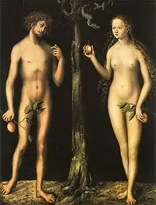 In the bedroom scene, both the negative and positive actions of the Lady are motivated by her desire.[86] Her feelings cause her to step out of the typical female role and into that of the male, thus becoming more empowered.[87] At the same time, those same actions make the Lady appear adulterous; some scholars compare her with Eve in the Bible.[88] By forcing Gawain to take her girdle, i.e. the apple, the pact made with Bertilak—and therefore the Green Knight—is broken.[89] In this sense, it is clear that at the hands of the Lady, Gawain is a "good man seduced".[89]