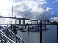 The Sir Leo Hielscher Bridges are a side-by-side pair of road bridges on the Gateway Motorway (M1), which skirts the eastern suburbs of Brisbane, Queensland, Australia. The western bridge carries traffic to the north and the eastern bridge carries traffic to the south. They are the most eastern crossing of the Brisbane River and the closest to Moreton Bay, crossing at the Quarries Reach and linking the suburbs of Eagle Farm and Murarrie. The original western bridge (formerly named the Gateway Bridge) was opened on 11 January 1986 and cost A$92 million to build.[1][3] The duplicate bridge was opened in May 2010, and cost $350 million.[1]