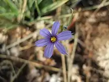 Sisyrinchium funereum is an uncommon species of flowering plant in the family Iridaceae known by the common names Funeral Mountain blue-eyed grass[1] and Death Valley blue-eyed-grass. It is endemic to the Mojave Desert of the United States, where it is known only from the Funeral Mountains and Death Valley area in eastern California, and the Ash Meadows area just over the border in Nevada. It grows in wet, highly alkaline habitat, such as seeps and mineral springs.