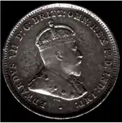 ![]() | King Edward VII | 1910 | 92.5% silver, 7.5% copper | Obverse: George W. De Saulles