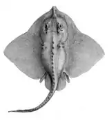 Skates are cartilaginous fish belonging to the family Rajidae in the superorder Batoidea of rays. More than 150 species have been described, in 17 genera.[2] Softnose skates and pygmy skates were previously treated as subfamilies of Rajidae (Arhynchobatinae and Gurgesiellinae), but are now considered as distinct families.[2] Alternatively, the name "skate" is used to refer to the entire order of Rajiformes (families Anacanthobatidae, Arhynchobatidae, Gurgesiellidae and Rajidae).[2]