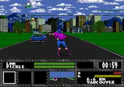 The player character begins the game with $100.[5] The player earns more money by winning races, skitching on various cars (with police cars rewarding more money), performing complex tricks, and knocking down opponents in combat.[6] Between races, the player can check the status of their skates, wheels and protective gear, which wear out over time, and can access a shop to purchase new equipment. The player will receive a password at the end of a successful race, which can be entered at a password entry screen in a subsequent session to maintain the player's progress.[5] The game ends if the player runs out of health, gets caught by the police, or cannot afford to replace worn out skates.