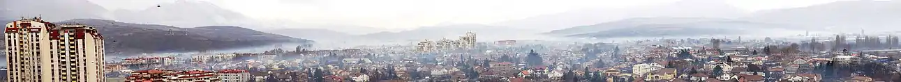 The Skopje valley is bordered on the West by the Šar Mountains, on the South by the Jakupica range, on the East by hills belonging to the Osogovo range, and on the North by the Skopska Crna Gora. Mount Vodno, the highest point inside the city limits, is 1066 m high and is part of the Jakupica range.[9]