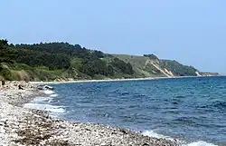 The hills, coastline, and sea by the lighthouse attracts visitors. Close to the lighthouse is Tyskertårnet, the German Tower, a watch point built during WW2 for surveillance of the Kattegat in occupied Denmark. A hill up from the lighthouse, Ellemandsbjerg, 99 meters above sea level is a view point. From here one can see southern Djursland, the Mols Hills, and the eastern coast of Jutland, plus the islands, Tunø, Samsø and Hjelm, as well as the Ebeltoft-peninsula. On a clear day one can also see Denmark's largest island, Zealand to the south-east. Here Denmark's capital Copenhagen is located. The coast by Sletterhage Ligthouse is visited by anglers and divers. The south facing hills surrounding the lighthouse have a dry microclimate giving living conditions for a number of not often seen insects, including a number of butterfly species.[4]