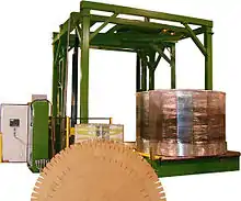 Slip sheets are thin pallet-sized sheets made of plastic, heavy laminated kraft paperboard, or corrugated fiberboard used in commercial shipping.[1][2][3][4] Often, these replace the use of traditional wooden pallets. The unit load is usually stretch wrapped or shrink wrapped for stability.[5]