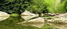 Slippery Rock Creek[1] is a small stream in Western Pennsylvania, a tributary of Connoquenessing Creek. From its source in Hilliards in Butler County, it flows through McConnells Mill State Park before flowing into the Connoquenessing in Ellwood City. Then, the Connoquenessing flows into the Beaver River just three miles south from the mouth of Slippery Rock.