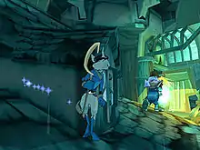 Sly Cooper: Thieves in Time was officially announced during Sony's 2011 E3 Keynote, and was officially released on February 5, 2013.[5] Sly Cooper and the whole gang return with an epic brand new adventure for the PlayStation 3 and the PlayStation Vita[6] systems. The pages of the Thievius Raccoonus are disappearing and Bentley, now keeper of the ancient book, must round up the gang and save the Cooper Clan legacy from being destroyed forever. With Bentley's newly invented time machine, the gang and Carmelita travel back in time to stop the various henchmen of the main villain, Cyrille Le Paradox, who is determined to replace the Coopers as the new master thief of the world. Along the way, the gang teams up with several of Sly's ancestors, all while Sly must deal with the aftermath of Carmelita discovering that he had faked his amnesia at the end of the previous game. The game was developed by Sanzaru Games, the same development team behind The Sly Collection, instead of Sucker Punch Productions, who turned their focus to the Infamous series.[7] If players unlock the game's secret ending, a clip is shown that hints at a potential future installment in the series, but on November 14, 2014, Sanzaru Games released a statement that they are not developing a future game.[8]