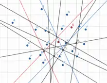 The points to be discarded are found the following way: Points Pi are arranged to pairs what defines lines pj as their bisectors. Median pm of bisectors in order by their directions (oriented to the same half-plane determined by bisector p1) is found and pairs from bisectors are made, such that in each pair one bisector has direction at most pm and the other at least pm (direction p1 could be considered as - or + according our needs.) Let Qk be the intersection of bisectors of k-th pair.