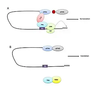- Vardy, Leah; Orr-Weaver, Terry L. (2007). "Regulating translation of maternal messages: multiple repression mechanisms". Trends in Cell Biology. 17 (11): 547–554. doi:10.1016/j.tcb.2007.09.002.
